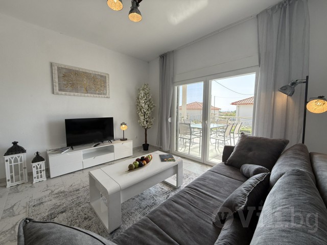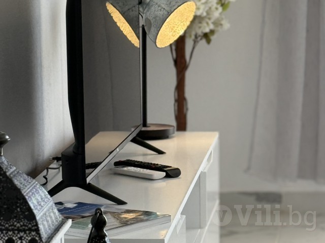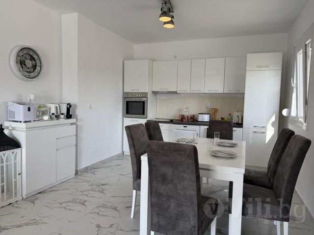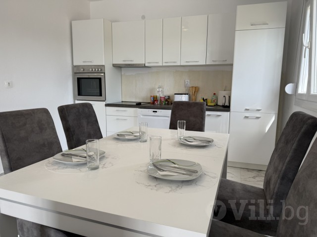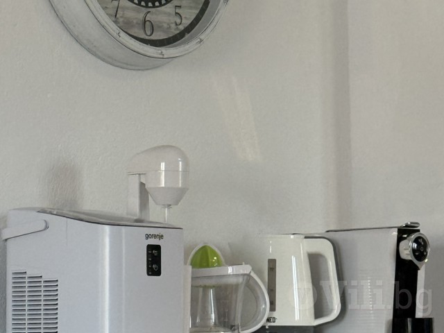 Напълно оборудвана кухня: котлони, фурна, хладилник с фризер, абсорбатор, еспресо машина, електрическа кана, микровълнова фурна, фрапе машина, фреш машина