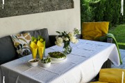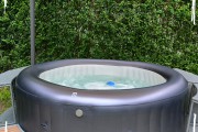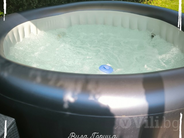 В двора е обособено място за почивка и барбекю с външно 6 местно джакузи. Обзавеждането на градинският кът е с ратанова мебели шезлонги. Джакузито е на разположение за нашите гости от 15 март до 15 ноември.
