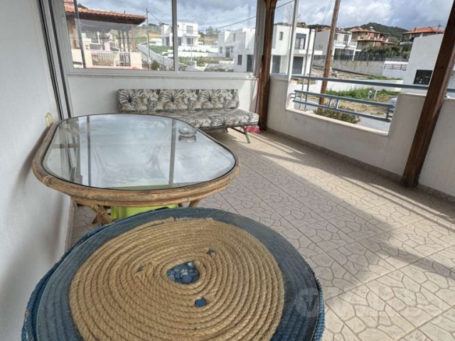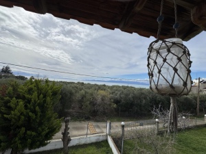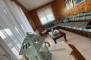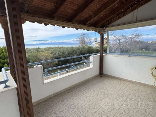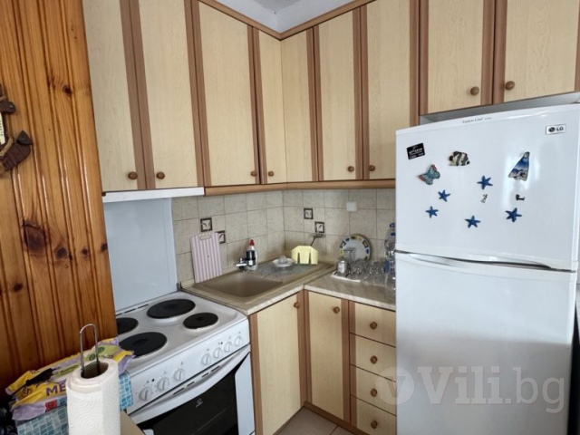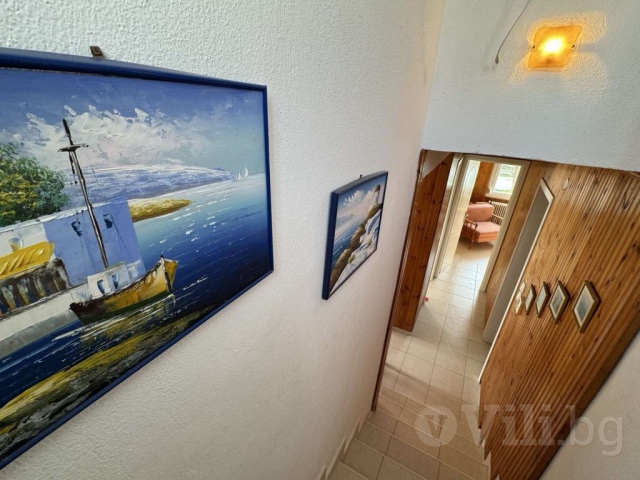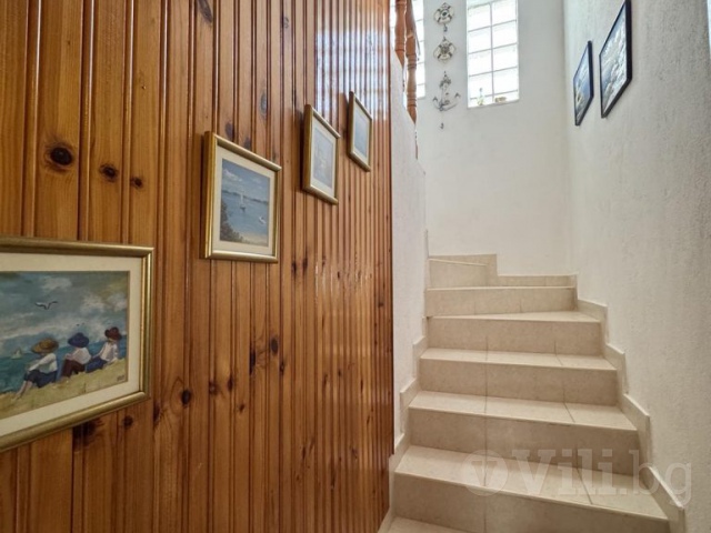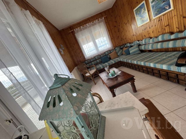 На втория етаж се намира дневната с кухненски кът, оборудван с всичко необходимо, голяма панорамна веранда с маса и столове и мека мебел.