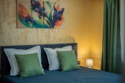 Къщата е с капацитет 15 човека. Разполага с четири двойни стаи-спални с италиански ортопедични матраци, една тройна и една стая със спалня и двоен разтегателен диван. Трите санитрни възела са оборудвани с козметика и тоалетни принадлежности.
