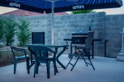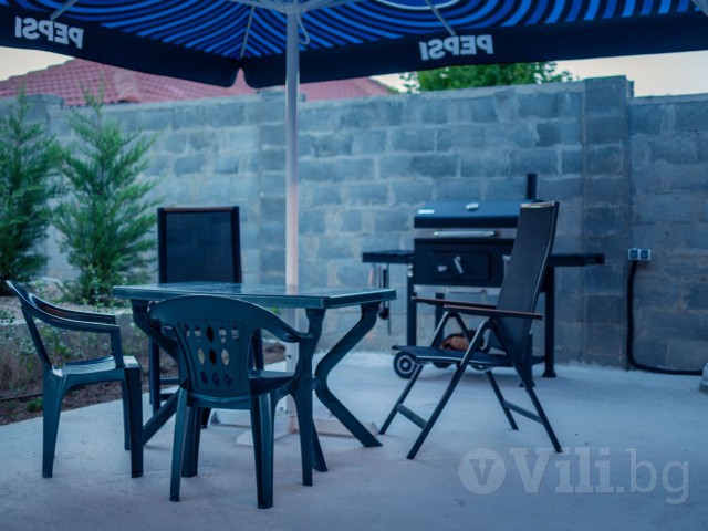 Барбекюто е до трапезарията и басейна.