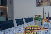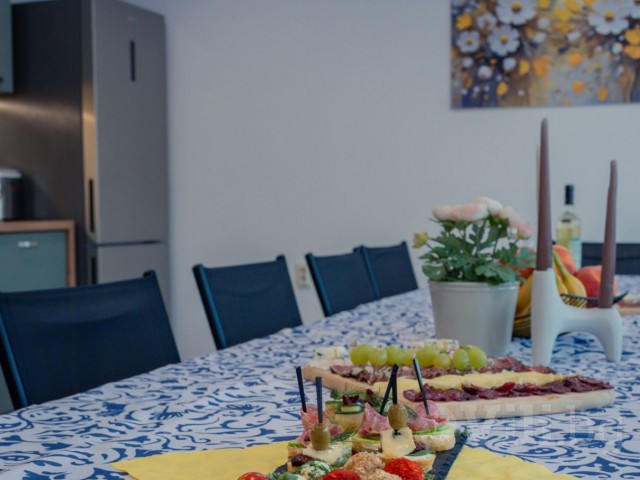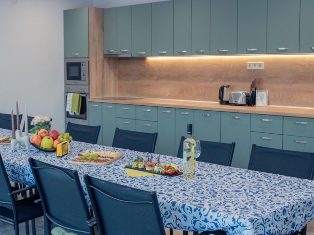 Оборудвана кухня-голям хладилник с фризер,фурна,керамични котлони, съдомиялна, микровълнова, кафемашина, електрическа кана, електрическа скара, тостер, прибори и посуда. В къщата има сешоар и ютия.