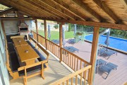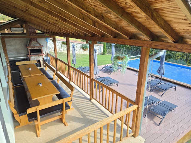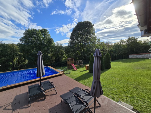 Къщата разполага със сателитна телевизия и интернет, отопляем басейн, сауна, джакузи, детска площадка, барбекю зона и паркинг.