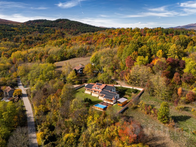 Къщата разполага със сателитна телевизия и интернет, отопляем басейн, сауна, джакузи, детска площадка, барбекю зона и паркинг.