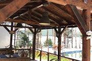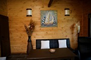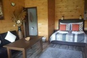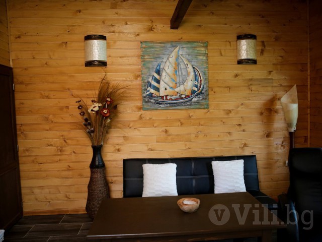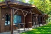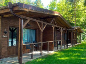1 дървена къщичка със 2 спални, допълнителен разтегателен диван, печка камина, тераса с гледка към басейна и езерото и самостоятелна баня с тоалетна (4+0/5+0/6+0)