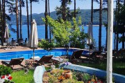 - При резервация до 12 гости ползвате 2 дървени къщички с по 2 стаи със спалня и допълнителен разтегателен диван, тераса с гледка към езерото и собствена баня с тоалетна (2+0/3+0);