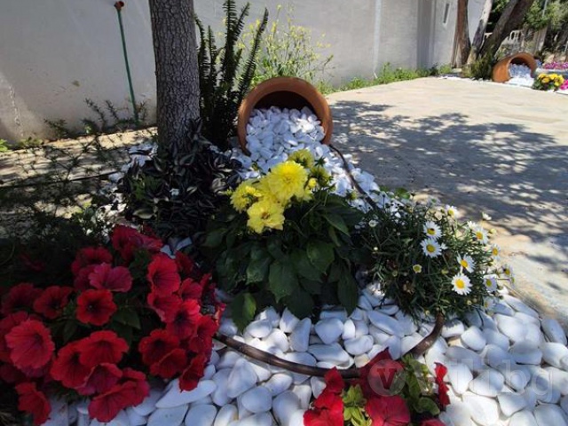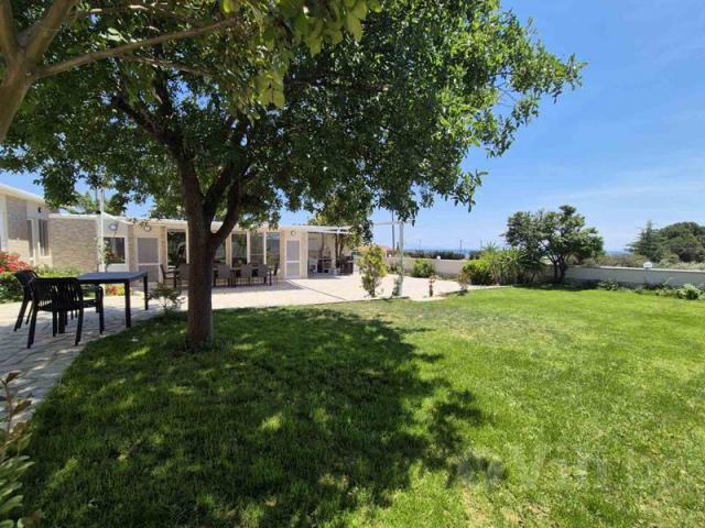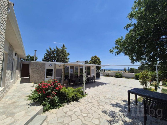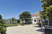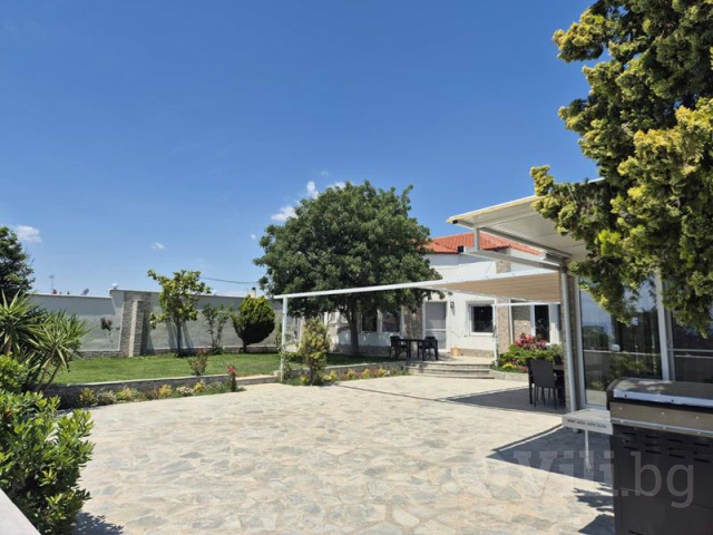 Голям двор, който e на две нива, външна покрита трапезария, BBQ.