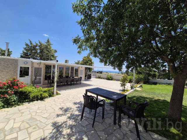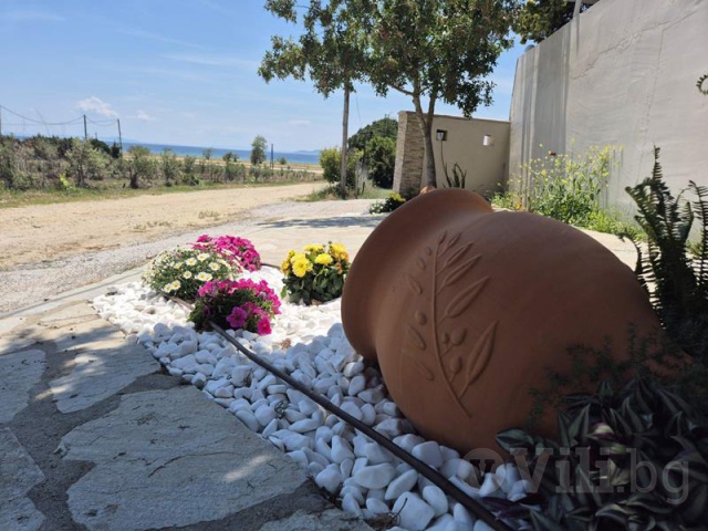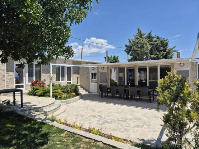 Към едната част има три отделни спални, всяка със самостоятелен вход директно от двора, собствена баня с тоалетна, климатик.