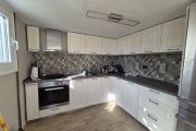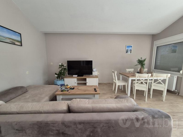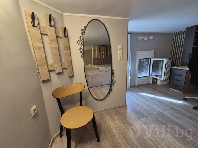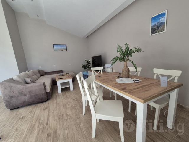 Втората част е къща. На долния етаж е разположена една двойна спалня, дневна разтегателен диван, кухня, баня и тоалетна.