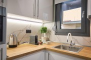 Кухненското оборудване включва хладилник, микровълнова фурна, котлони, кафемашина и електрическа кана, осигурявайки всичко необходимо за комфортен престой.