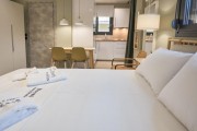 Всяко студио разполага с едно двойно легло и едно единично легло, което го прави подходящо за настаняване на до трима гости.