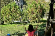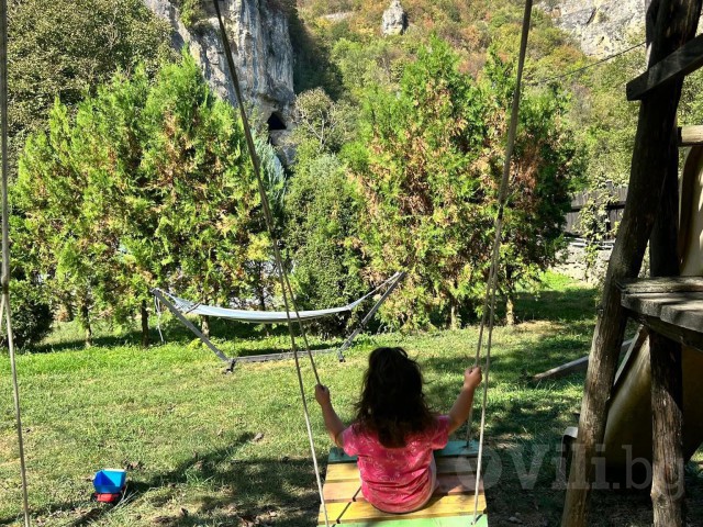 Къщата разполага с голям двор. Тук може да се потопите в басейна или да улавяте слънчевите лъчи от шезлонга, наслаждавайки се на чистия въздух, с напитка в ръка, слушайки румоленето на р. Русенски Лом. Реката се намира точно пред къщата. Именно тук може да се наслаждавате на Вашето хоби - риболова.