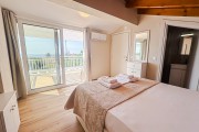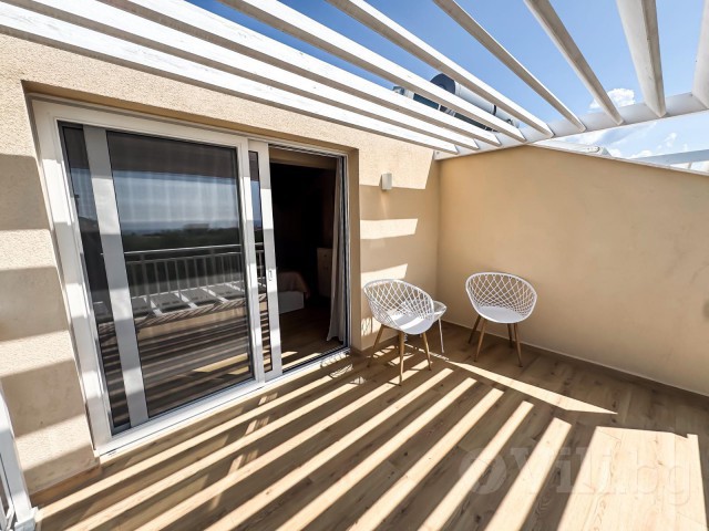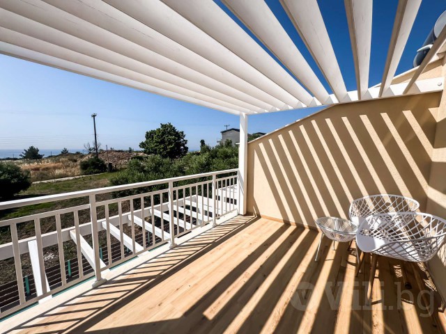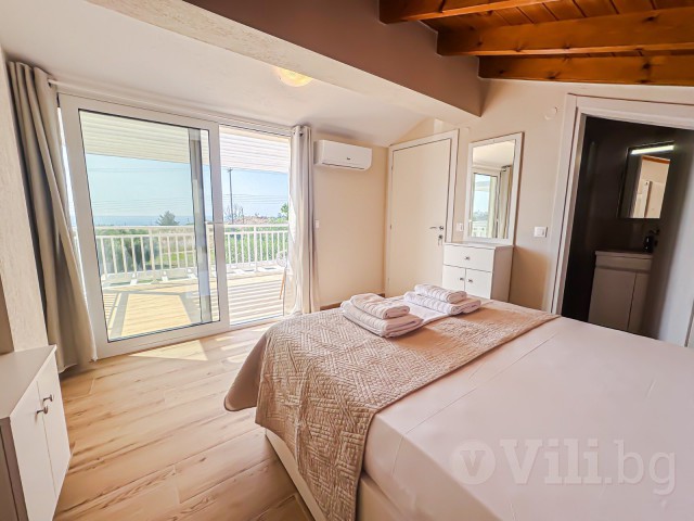 На втория етаж е втората спалня с балкон, от която се открива невероятна гледка към морето, и още една баня с тоалетна.