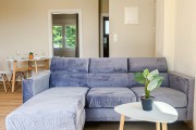 Голяма всекидневна с мека мебел и телевизор