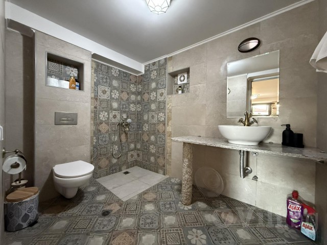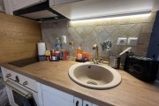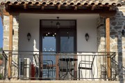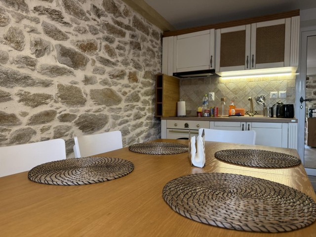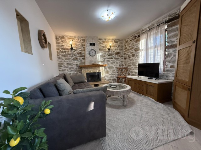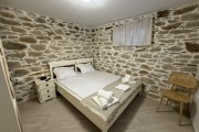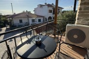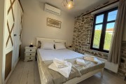 За втория едноспален апартамент с балкон се влиза през задния двор на вилата. В него има дървена маса за 8 човека, кухненска зона с мивка, хладилник с фризер и охладител за вода, пералня и барбекю. Апартамента също предлага уютен хол с климатик с модрна мека мебел, телевизор и камина, трапезария с маса за 5 човека, бар плот с високи столчета и напълно оборудвана модерна кухня. В нея има посуда, котлони, фурна, хладилник с фризер, абсорбатор, еспресо машина, електрическа кана, микровълнова фурна, фрапе машина и фреш машина. Банята с тоалетна е луксозна и заредена с консумативи. Спалнята е комфортна с климатик, разполага с голямо легло, тоалетки, гардероб, дрешник и телевизор, зана за гримиране и огледало, ютия и сешоар.