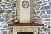 Хол с камина, заредена с дърва