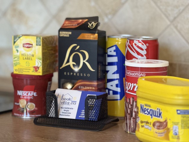 Пред вилата има магазин за прясна риба, а на долу по улицата гостите ще намерят ресторант с бар, галерия, таверни, герадико, сладкарница, железария, различни магазинчета. Нагоре над вилата на 100 метра се намира супермаркет и срещу него детска площадка.