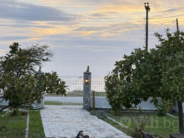 Sunrise BeachFront Villa се намира на първа линия на брега на Солунския залив във вилната зона на Неа Каликратия, само на 10 минути пеша от града. Слънчево, чисто и спокойно място, в което може да се отдадете на пълноценна почивка. Плажът и морето са на 10 метра от вратата на вилата, а популярният Sahara Beach е само на 4 минути пешаходно разстояние. Вилата е предпочитана от семейства с деца или близки приятелски компании. Разстоянието от София е около 4 часа с автомобил, а Солун е само на 40 км. Къщата има голям собствен двор с много зеленина, нарови дървета, градински кът с маса и столове за прохладни вечери под звездите. От терасата може да се наблюдава невероятният залез над Солунския залив или да гледате морето и да слушате вълните. За да се отиде на плаж е нужно само да се пресече малката уличка пред вилата.