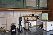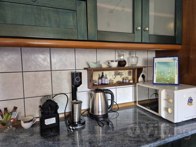 На горното ниво се намира дневна с напълно оборудвана кухня, кафе машина. Разтегателен диван, подходящ за още двама човека.