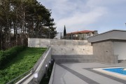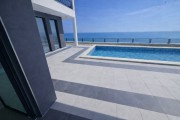 От всекидневната на вилата се излиза до външната зона. Там от всеки ъгъл се разкриват невероятни гледки към морето, в които да се влюбите. На разположение на гостите има басейн с размери 10 м х 4 м и прилежаща детска секция към него. Точно до него се намира зоната с вградено барбекю с мивка, телевизор със сателитни канали и градинска мебел за събиране на цялата компания.