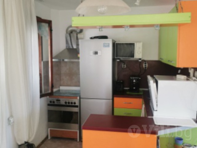 1 етаж – Хол обзаведен с мека мебел, телевизия ,интернет , трапезария и кухня обзаведена, с хладиник , микровълнова , готварска печка кафемашина баня с тоалетна на етажа .