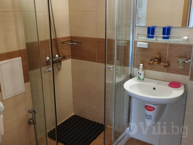 2 етаж –Три спални , две от които са обзаведени едно двойно и едно единично легло, и една спалня с двойно легло . Баня с тоалетна на етажа обслужваща 2 те спални и една самостоятелна баня със санитарен възел в третата спалня.. Всяка спалня е с тераса обезопасени с алуминиеви парапети и с изглед към морето. Спалните са с оборудвани климатици пластмасова дограма със стъклопакет за по добър комфорт както и завеси за изолация на дневната светлина .Баните са с душ кабини и смесители с термоглави за поддържане постоянна температура на водата. В непосредствена близост заведния , магазин хранителни стоки .