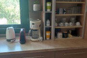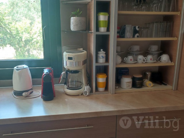 Напълно оборудвана кухня с съдомиялна машина, тостер, кафемашина, микровълнова фурна, фурна и котлон