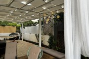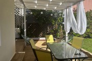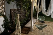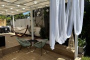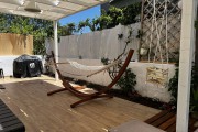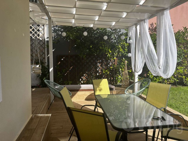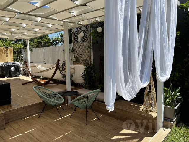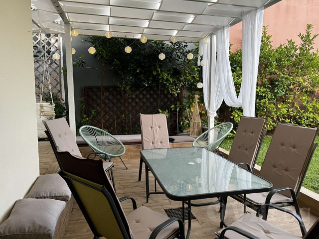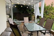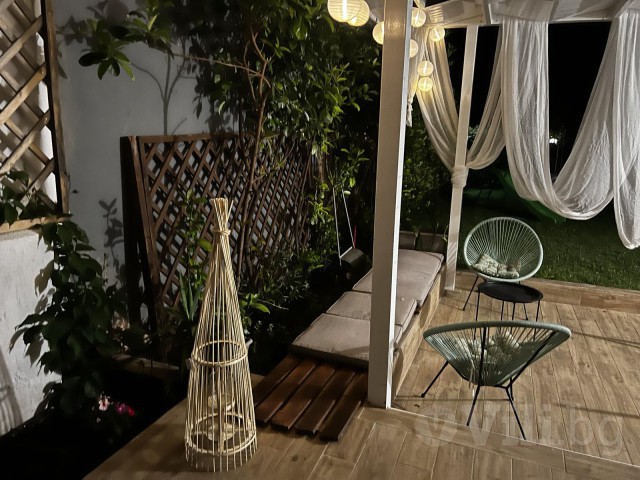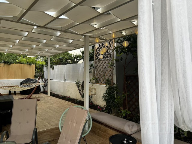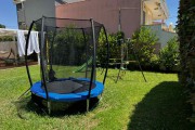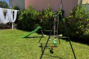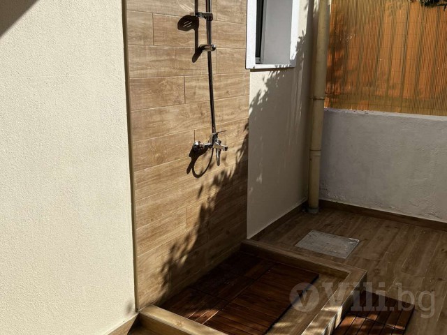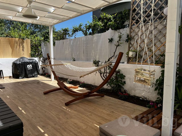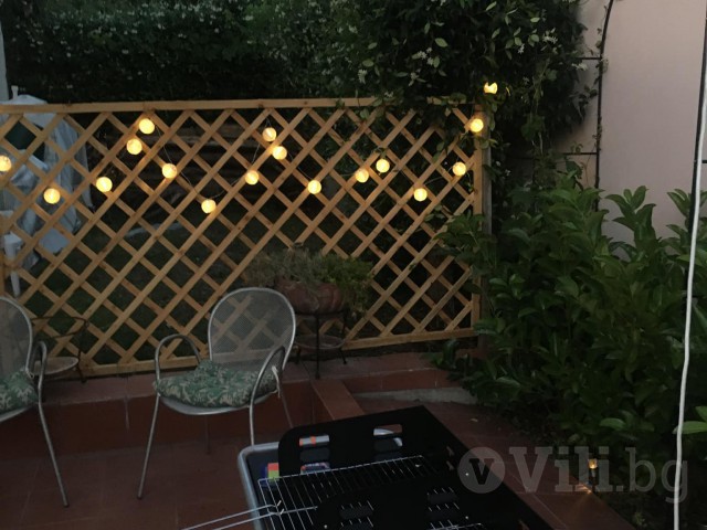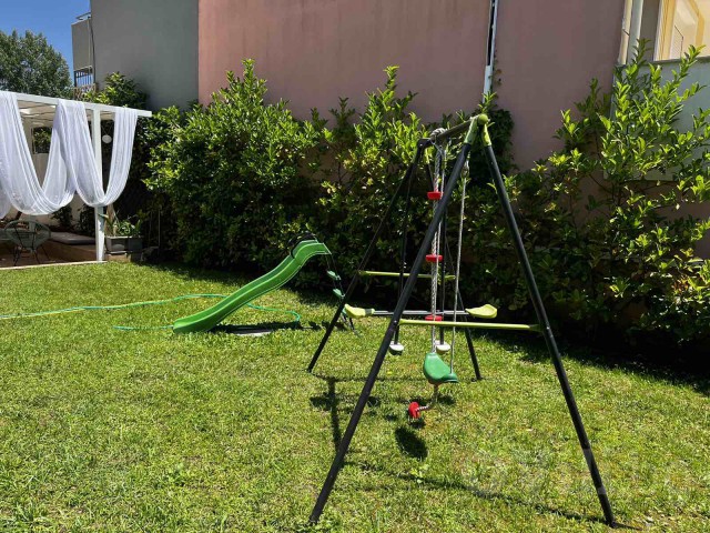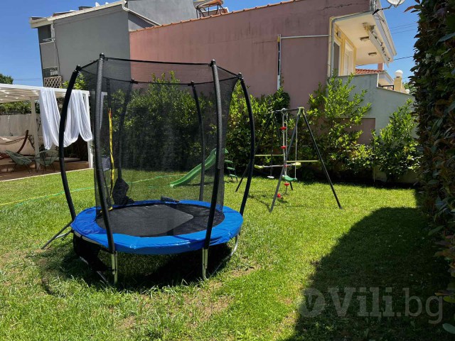 Градината е прекрасно озеленена и разполага с детски кът с люлки, пързалка и батут, както и обособена барбекю зона за незабравими летни вечери. Просторната тераса е идеална за сутрешно кафе или вечерен релакс. За допълнително удобство има и външен душ с топла и студена вода.