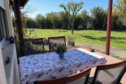 Подходяща е за 4+2 човека, разполага с хол с кухненски бокс, баня с тоалетна, голяма веранда, две спални /едната е преходна/ и разкошна тераса, на която да се насладите на летните безкрайни залези с питие в ръка.