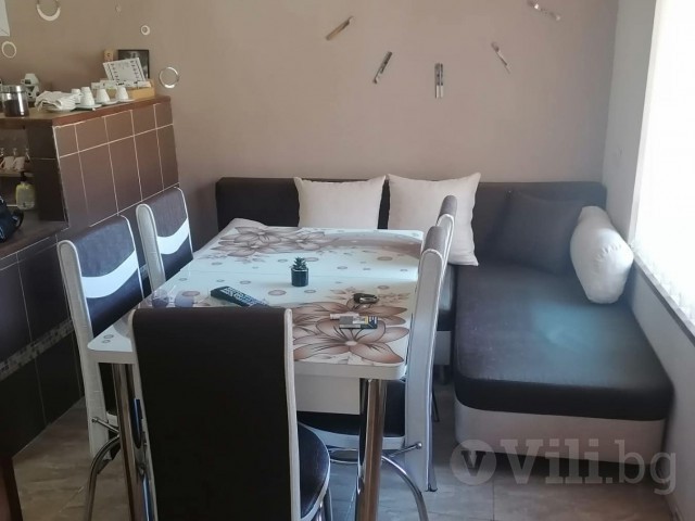 - 1-ви етаж - голям хол с два двойни разтегателни дивана, камина, LED телевизор, климатик, интернет, бар плот, изцяло оборудвана кухня, санитарен възел.